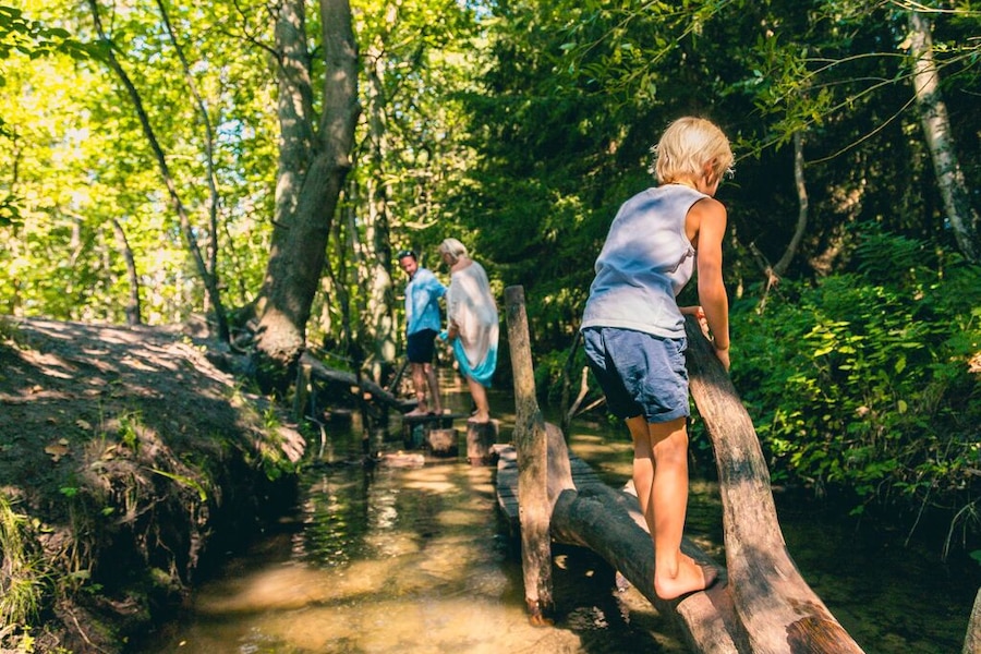 Na al dat leuks op de camping zijn jullie vast klaar voor een uitstapje. De camping ligt aan de hoofdweg (N712). Vanaf hier rijd je snel naar alle uitjes in de buurt. Zet bijvoorbeeld de fiets achter op de auto en rijd naar Bosland. Hier vind je een fietsbrug op 10 meter hoogte. Je fietst hier letterlijk tussen de boomtoppen door! Voor een duik in de geschiedenis is een bezoek aan de Abdij van Postel een topidee. Hier kun je het informatiecentrum bezoeken, rondsnuffelen in de Abdijwinkel of (op aanvraag) een rondleiding volgen.