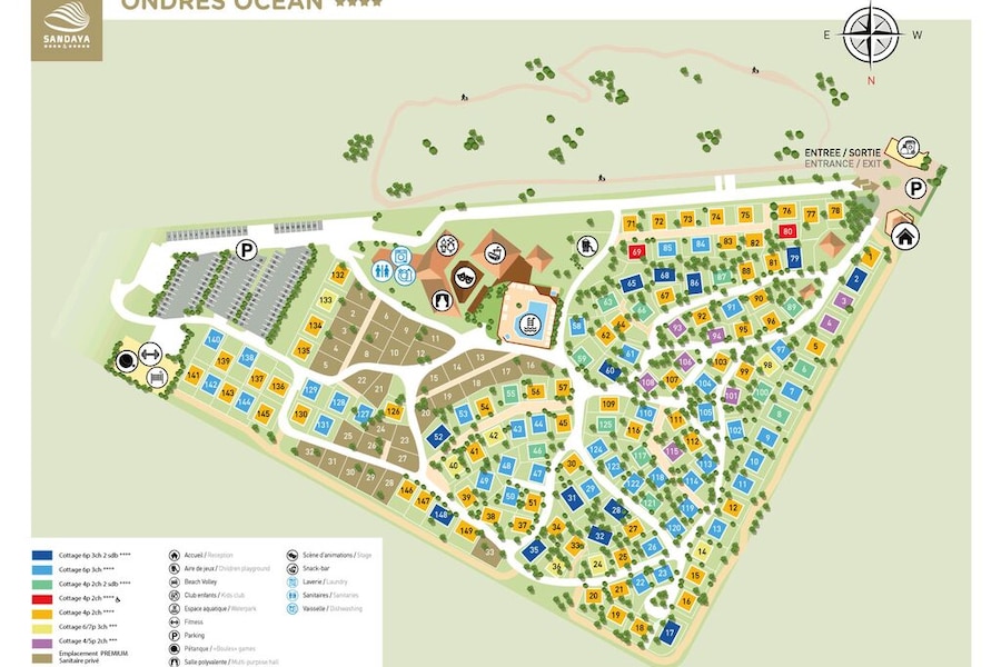 Wil je tijdens je vakantie zowel tot rust komen als op ontdekkingstocht door de natuur? Dan is Camping Sandaya Ondres Océan een uitstekende bestemming! Deze camping ligt midden in een dennenbos en op slechts 200 meter van het strand. Ideaal voor gezinnen die van de zon, zee en de natuur willen genieten. De gunstige ligging maakt deze camping de perfecte uitvalsbasis voor uiteenlopende activiteiten.Vlakbij de zee én een zwembad