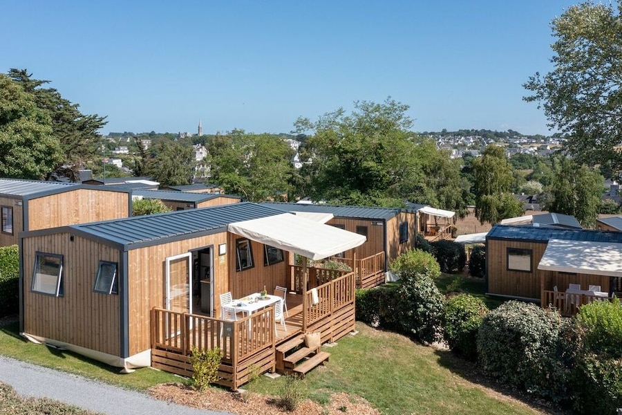 Een wat oudere camping, zeer vriendelijk, jong en behulpzaam personeel in het kantoor, 1 oud was-gebouw en 1 nieuwere, gelegen op een prachtige hoge plek boven het stadje.
