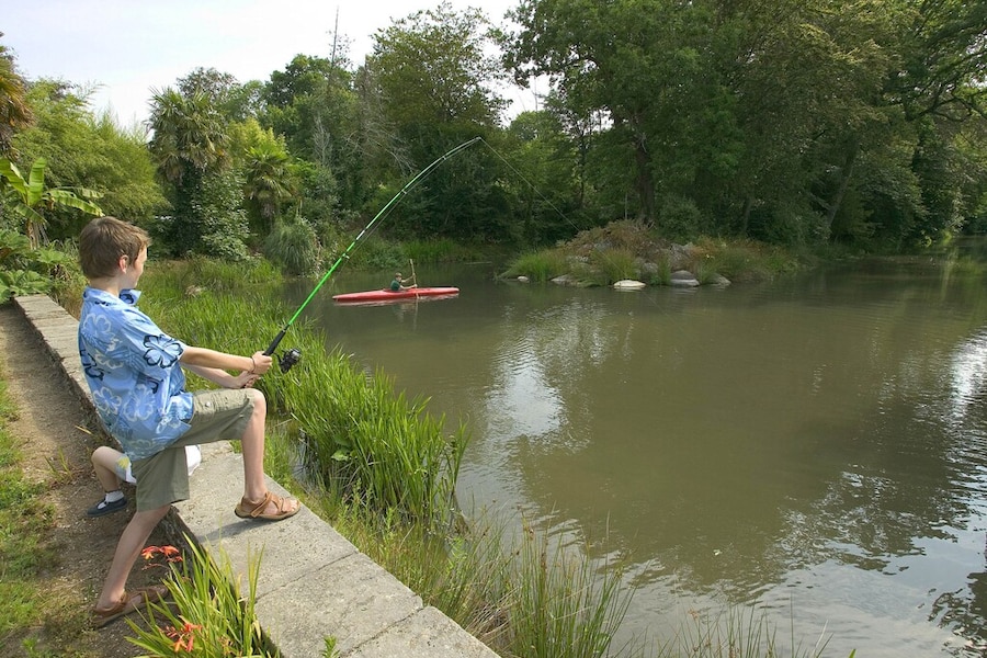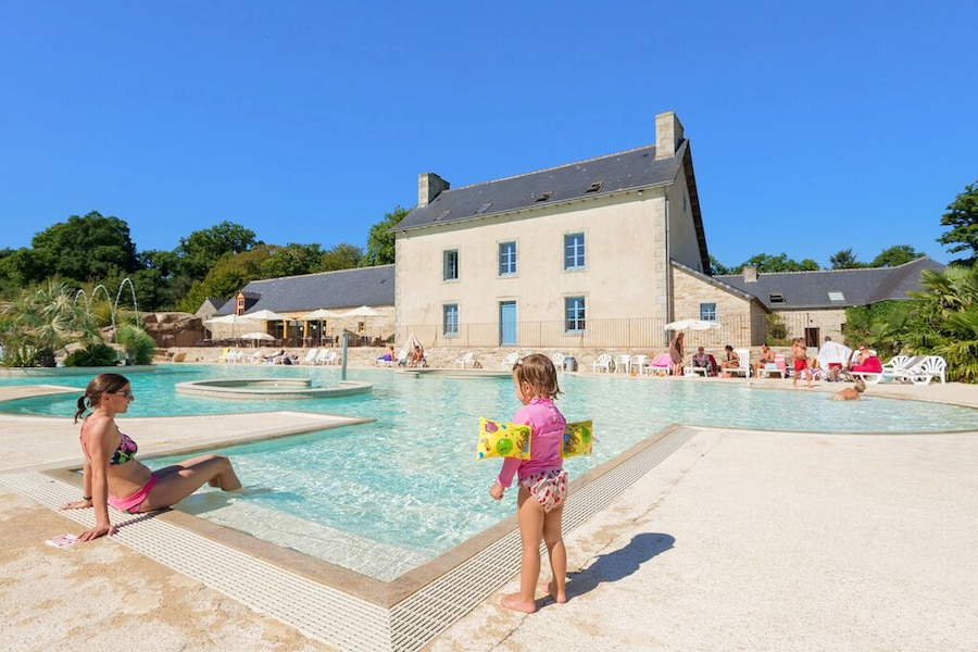 De camping ligt op een historisch landgoed aan de rivier de Odet, verscholen in een 45 hectare groot park met terrasvormige tuinen en boomgaarden. Zwemmen in de rivier mag niet vanwege de stroming, kanoën mag wel. En gelukkig is er ook een groot verwarmd aquapark met glijbanen, peuterbaden, watervallen en bubbelbaden! Zit het weer even tegen? Neem dan een duik in het kleinere, overdekte zwembad. Wie nog meer ontspanning zoekt, kan tegen betaling gebruikmaken van de wellnessfaciliteiten.