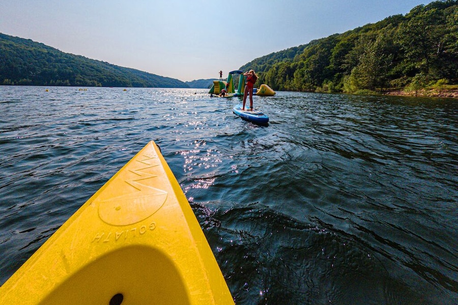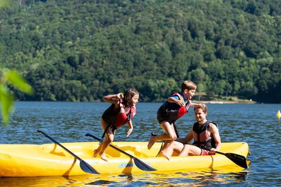 Op deze camping is er altijd iets te beleven. Zo is er een multisportveld aanwezig voor een potje jeu-de-boules en waterliefhebbers kunnen kano's en waterfietsen huren om het meer te verkennen. Waaghalzen kunnen het meer ook bewonderen vanaf de kabelbaan over het water. In het hoogseizoen is er een miniclub voor de kleintjes en worden er sportevenementen en muziekavonden georganiseerd voor het hele gezin.In de omgeving is ook van alles te zien. Trek er bijvoorbeeld op uit om de watervallen te ontdekken. En val niet direct in slaap zodra het donker is. Op heldere dagen is een kijkje naar de sterrenhemel een heerlijke afsluiter van je vakantiedag.