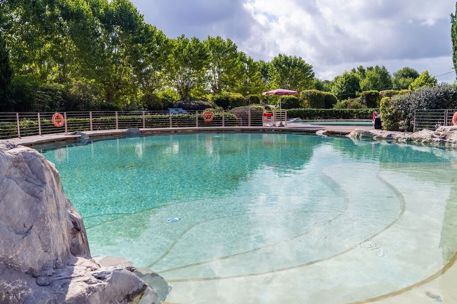 Ben je op de camping toe aan een frisse duik? Zoek dan verkoeling in het 379 m² grootte zwemparadijs dat de camping rijk is. Het zwemgedeelte is verdeeld in drie baden, waarvan één met whirlpool. Omringd door groene grasvelden om op te zonnen, is dit de ideale plek om je dagen door te brengen.