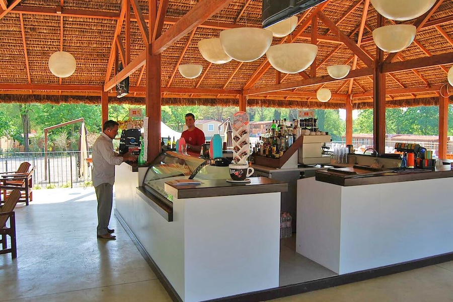 Lig je lekker in het zwembad? Kijk dan niet gek op als je soms iemand over ziet razen. Boven het zwembad hangt namelijk een lange kabelbaan. Deze spannende attractie is onderdeel van het klimparcours. Durven je kinderen het aan? Zijn ze nog te klein, neem ze dan mee naar de speeltuin. Of kijk samen naar een dansshow. Iedereen mag meedansen! Daarna op naar de pizzeria. Een Italiaanse pizza gaat er altijd wel in. Is er nog een plekje in je buik vrij? Neem dan een ijsje of een pannenkoek met Nutella.Luxe SunLodge vlak bij het zwembad