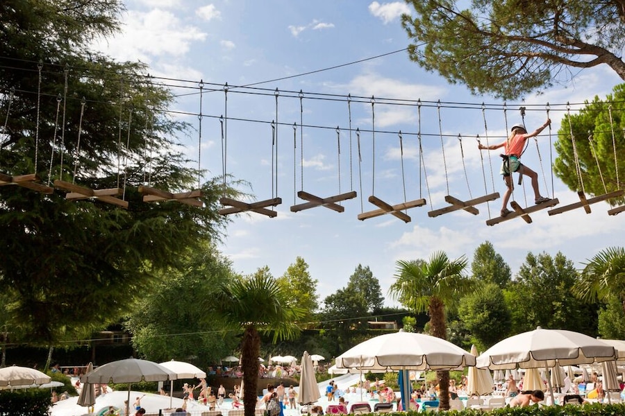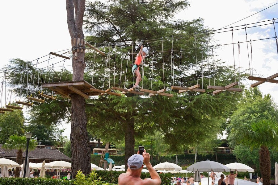 Het eerste wat de kinderen willen als jullie op de camping aankomen? Zwemmen, natuurlijk! In het grote, ondiepe lagunebad kan het hele gezin genieten van het water. De kinderen badderen in het zwembad, met zijn zachte ondergrond extra veilig. Glij samen van de steile waterglijbanen. Rustig baantjes trekken kan ook, in het grote wedstrijdbad. Welk zwembad je ook uitkiest, op camping hu Altomincio Village beleef je eindeloos veel waterpret.Klimmen, spelen en dansen