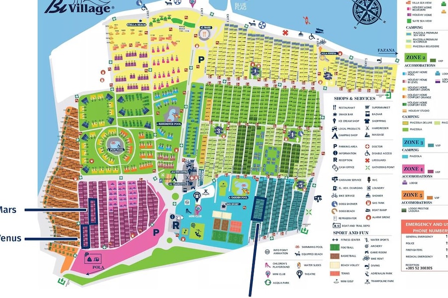 Smuk campingplads og faciliteter bliver gjort godt ren. Men lidt træls, at der kun er små pools uden opvarmning og de holder lukket i 3 timer. Der er ikke mange ting til børn de kan lave uden der skal betales for det.