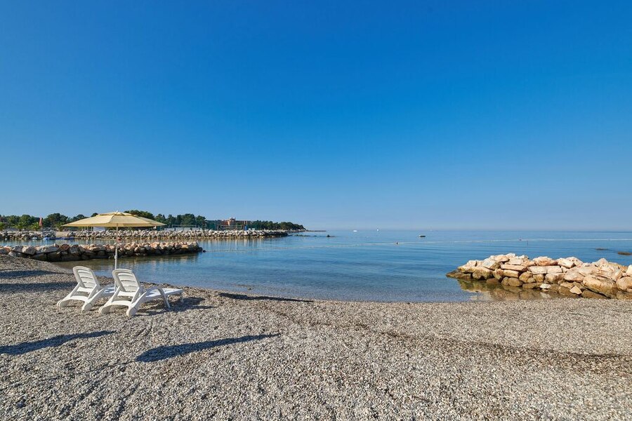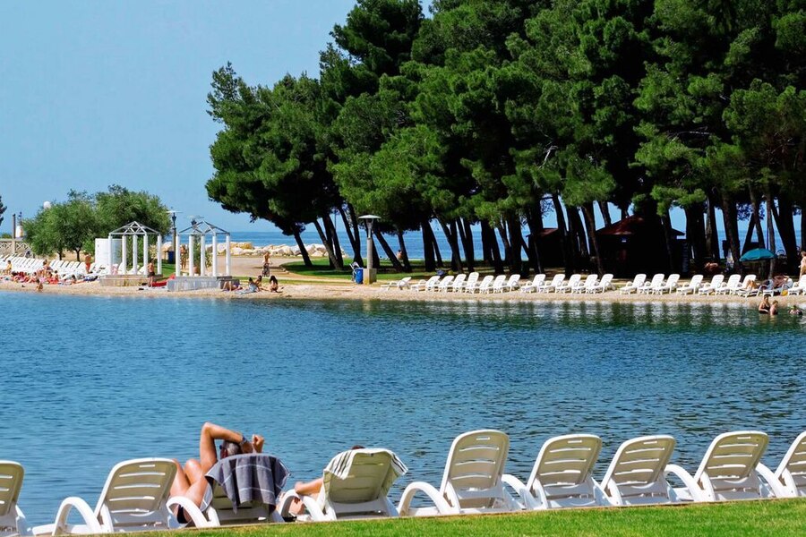 In de vroege ochtend vanuit je bed zo het zwembad induiken? Op Camping Stella Maris hoef je niet ver te zoeken voor water. Vlak bij de ingang van deze Kroatische camping ligt het grote zwembad. Hier kun je lekker zwemmen met je kinderen. Ook aan de allerkleinsten is gedacht, voor hen is er een peuterbadje. Even wat anders? Dan loop je gewoon naar de Adriatische Zee. Binnen een paar minuten sta je aan een ondiepe ronde baai. Ook hier kun je met het hele gezin veilig in het water spelen.