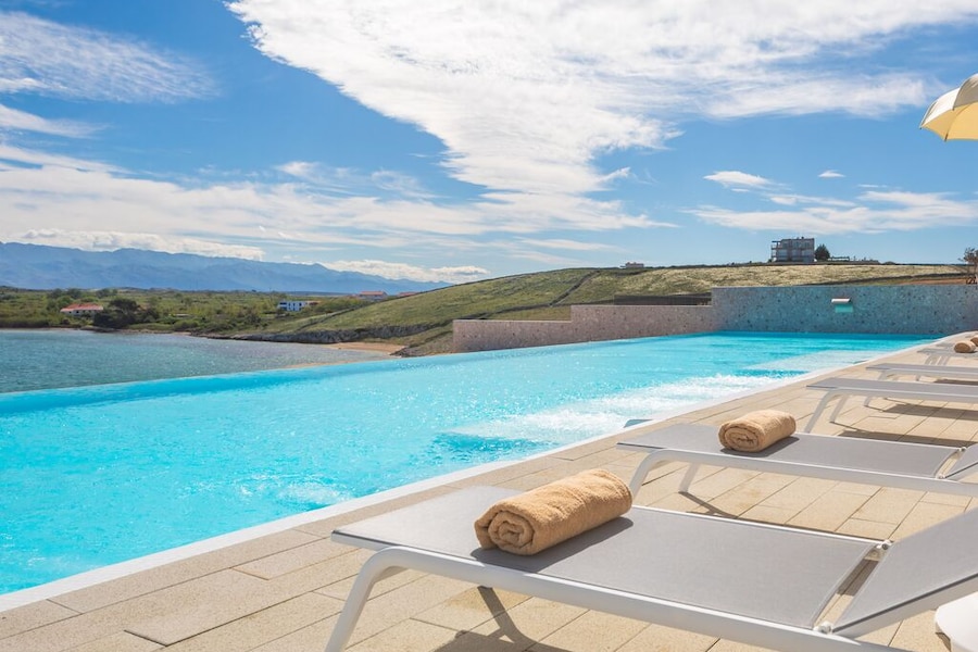 Stralende zon, prachtig blauw water, rotsachtige landschappen en mooie baaienwater: dat moet het eilandleven zijn! Camping Aminess Avalona Resort is een luxe vakantiepark op het Kroatische eiland Pag. Je verblijf hier is de definitie van glamping. Met luxe accommodaties en genoeg faciliteiten, weet je zeker dat de hele familie hier aan zijn trekken komt.Stranden ten over