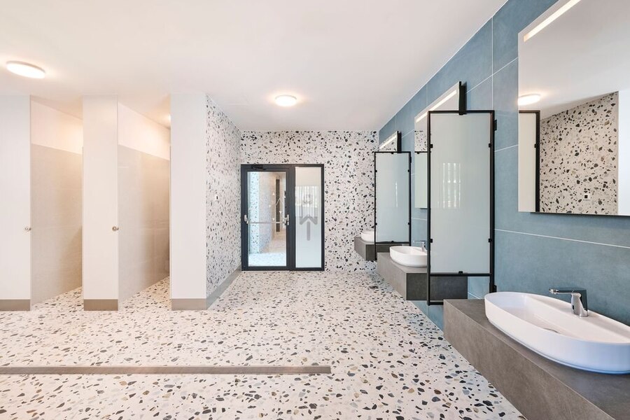 - Individuele wascabines: koud water