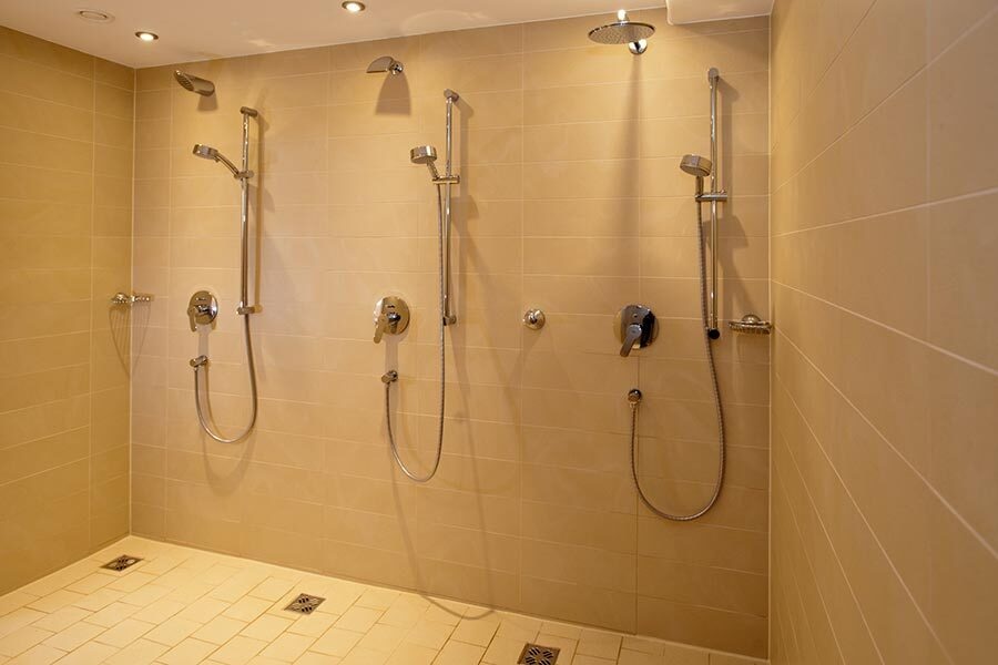 - Individuele wascabines: koud water