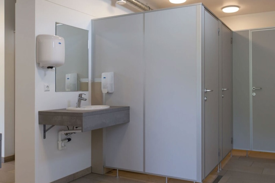 - Individuele wascabines: koud water