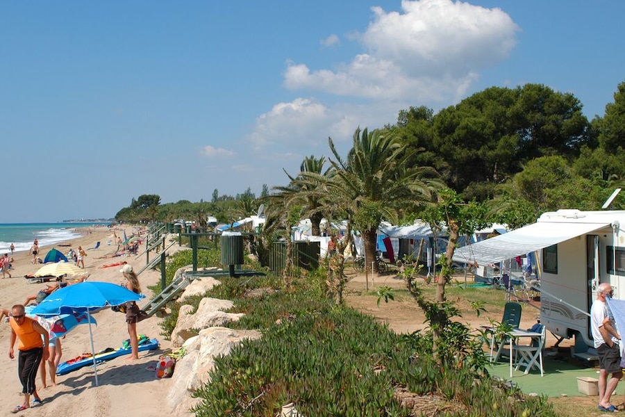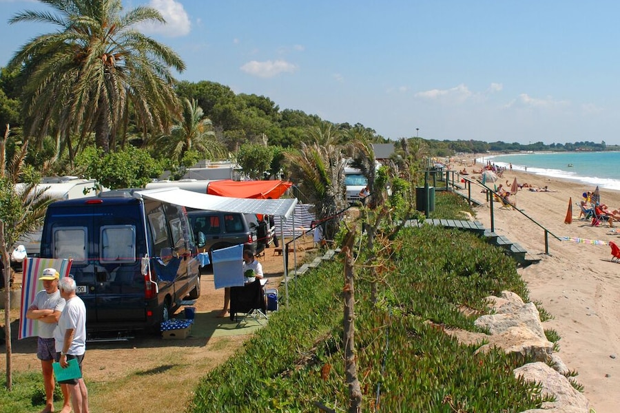 In een van de ruime stacaravans vind je alles wat je nodig hebt voor een geslaagde vakantie. Het mooie campingterrein is begroeid met mediterraanse beplanting. Je logeert dus tussen de olijfbomen, bloemen en ruisende palmbomen. En waar je ook staat, je bent nooit ver van het strand. Wil je direct aan het strand staan? Met je eigen kampeermiddel kun je een plaatsje reserveren met uitzicht op zee.